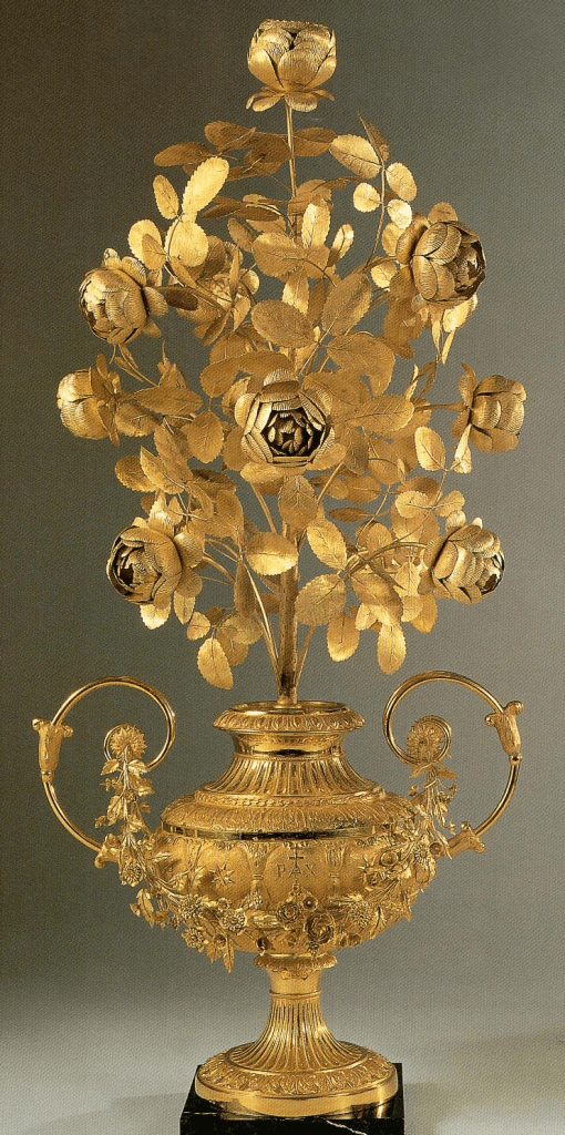 Tuttavia, il significato della Rosa d’Oro è più antico e differente. Un tempo veniva conferito a personalità, non a santuari.