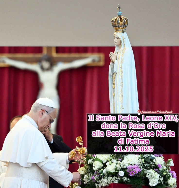 Oggi 11 ottobre 2025 per il Giubileo Maria, Papa Leone XIV – CLICCA QUI – ha donato la Rosa d’Oro alla Beata Vergine Maria di Fatima in Piazza san Pietro