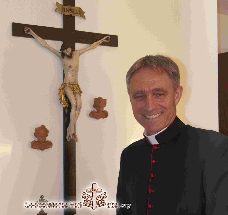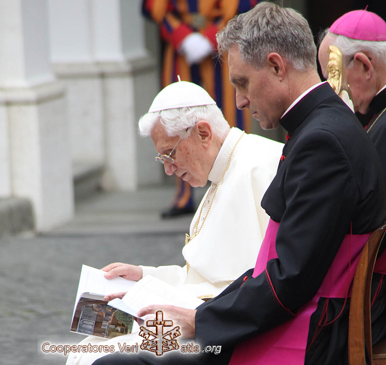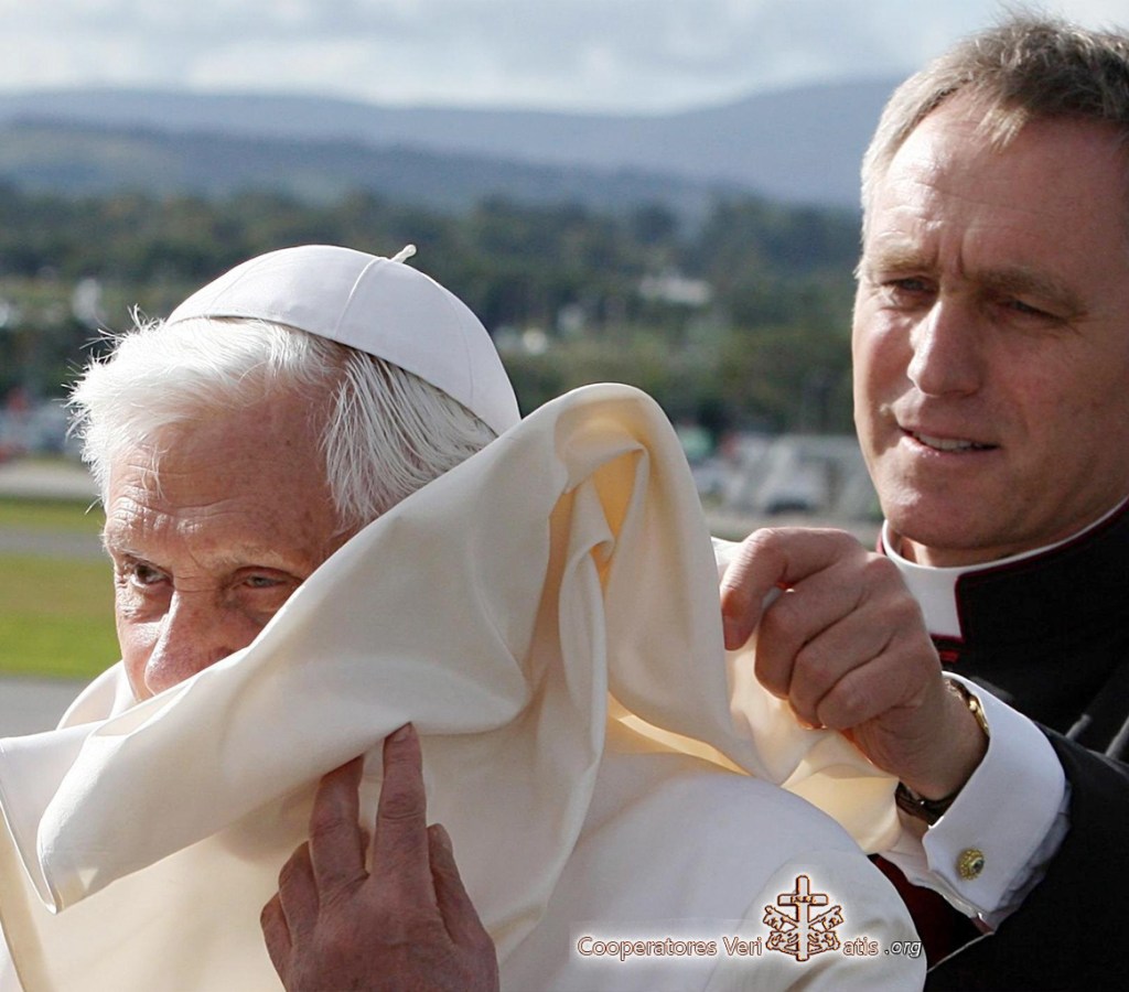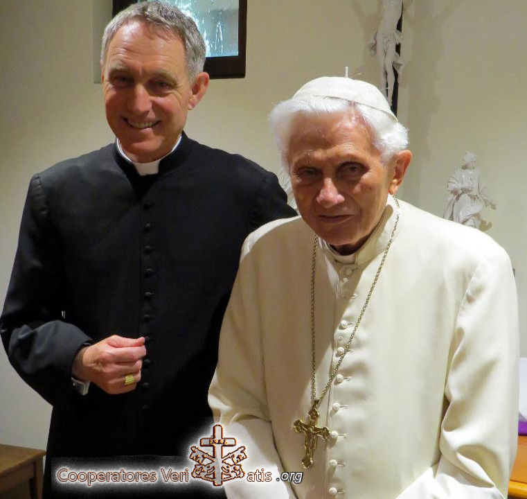 – Adesso son 37 anni che sono sacerdote: sono stato ordinato nel maggio 1984. E’ vero che pensavo di diventare certosino. Al secondo anno del seminario, insieme con un altro seminarista, siamo andati in una certosa per fare un ritiro. Mi ha affascinato quel mondo che è fuori dal mondo: silenzio, spiritualità profonda, vita nel luogo circondato dal bosco. Prima di tornare al seminario mi sono confessato da un anziano monaco certosino, che mi ha detto: «Prima finisca gli studi. Se il Signore la vuole qui lei tornerà. Se si tratta di un entusiasmo passeggero, lei sceglierà un’altra strada». E alla fine ho deciso di diventare un sacerdote della diocesi da dove provengo, Friburgo in Brisgovia. Se adesso sono qui in Vaticano come segretario del Papa emerito questo non era prevedibile, non era nei miei piani di vita. Tutto succedeva anche se io non pianificavo niente. All’inizio facevo il viceparroco, dopo il vescovo mi ha chiesto di continuare gli studi: ho fatto il dottorato a Monaco. Ho collaborato un po’ di tempo con il vescovo, ma dopo è arrivata una richiesta di lavoro per un certo periodo presso la Curia Romana. E questo periodo non è ancora finito…