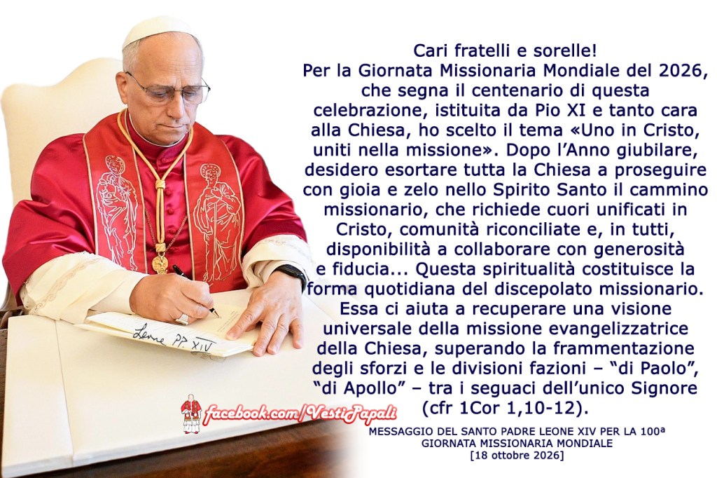 QUI https://www.vatican.va/content/leo-xiv/it/messages/mission/documents/20260125-giornata-missionaria.html IL TESTO INTEGRALE.