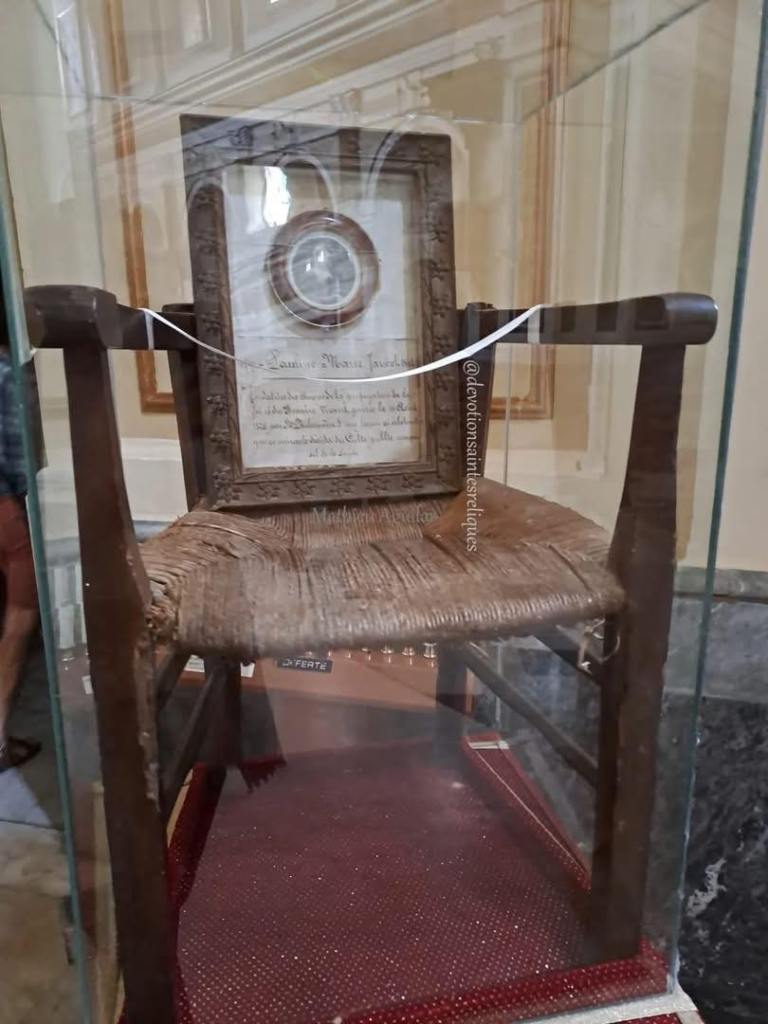 • La sedia del trasporto e guarigione della Beata Paolina Maria Jaricot per intercessione di Santa Filomena, Santuario di Santa Filomena, Mugnano del Cardinale (Avellino).