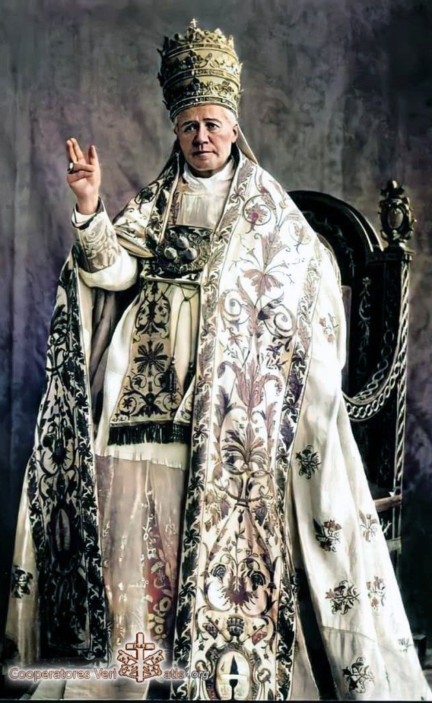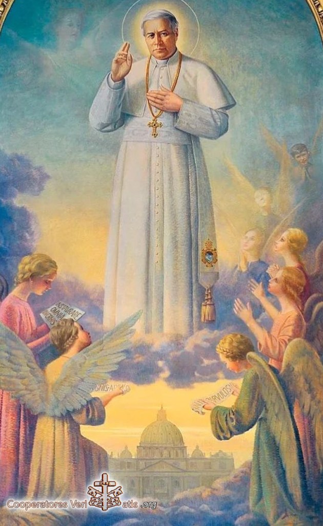 A Leone XIII mancò il tempo per smascherare e abbattere il modernismo, questa idra dalle molteplici teste, in ognuna delle quali riviveva una antica eresia; a Leone XIII mancò il tempo di riorganizzare le istituzioni ecclesiastiche in modo che potessero esercitare, con più ampiezza, più armonia e più efficacia, le funzioni essenziali del magistero e del governo che esse traggono dall’Autorità suprema della Sede Apostolica. Iddio, però, suscitò il successore che egli desiderava. San Pio X era stato uno dei suoi più fedeli discepoli, si era formato sulla dottrina delle sue grandi encicliche ed aveva egli pure la chiara intuizione dei gravi pericoli che minacciavano la Chiesa; in più, la profonda esperienza nel governo delle anime che egli aveva acquisita come parroco, come vescovo e come Patriarca, unita a non comuni doni naturali e ad una profonda santità, ne facevano l’uomo adatto per compiere l’opera di universale rinnovamento nella Chiesa. All’inizio del suo pontificato, Pio X stabilì le linee fondamentali del suo programma attraverso le parole con le quali san Paolo aveva parlato del piano di Dio che salva il mondo: “Instaurare omnia in Christo”: opera che aveva avuto il suo termine con la vita terrena del Redentore, ma la cui realizzazione continua a compiersi nel tempo col concorso degli uomini. Con questo suo motto, Pio X faceva capire che le circostanze del tempo non affidavano al Papa una particolare vigilanza su certi problemi soltanto ma che tutto, omnia, abbisognava d’una energica presa di posizione, perché nulla sfuggisse al Cristo e alla sua Redenzione.