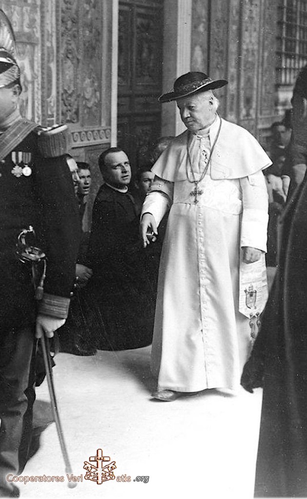 La vecchiaia di Leone XIII, il cui regno era stato lungo e glorioso, fu attristata dai gravi pericoli che minacciavano la Chiesa. Una sottile eresia colpiva il cuore stesso della Rivelazione e, sotto le spoglie menzogniere d’un progresso vivificatore, rinnegava la tradizione e alterava i dogmi. Nondimeno, nessun Papa dei tempi moderni, al pari di Leone XIII, aveva fatto luce al cammino degli uomini. Il numero e la qualità delle sue Encicliche lo pongono tra i grandi Dottori che hanno capito il loro tempo e risolto le scottanti questioni dei momento. Si aveva ascoltato, si aveva applaudito, ma in molti ambienti non si aveva capito, non solo, ma si aveva persino alterato, e questa era la cosa più grave, il pensiero stesso del Papa.