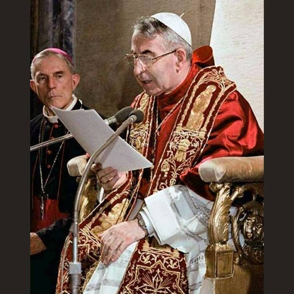 I primi anni di sacerdozio nella terra agordina, i più belli della sua vita. Per dieci anni vicerettore del seminario di Belluno, a stretto contatto con gli amati chierici. Temperamento versatile: intelligente, sereno, memoria prodigiosa; divenne professore di filosofia, di diritto canonico, di arte sacra, di storia, patristica, sacra eloquenza, catechetica. Fu uomo di profonda cultura, attraverso la quale trasmetteva la Verità. Poi il difficile periodo da patriarca di Venezia (1969-1978), durante le contestazioni studentesche e operaie, periodo nel quale si avvide del nefasto influsso massonico sia nella finanza sia anche dentro le maglie della Chiesa. Umile e amabile, Papa Luciani era comunque dotato di fermezza e di coraggio, come ricordano i testimoni. Morì, in circostanze ancor oggi non accertate, lasciando un grande vuoto, nonostante i soli trentatré giorni del suo indimenticabile pontificato.”