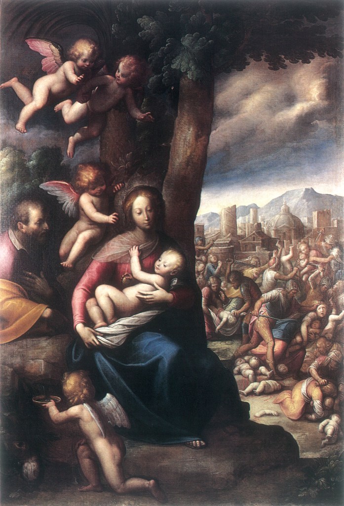 VANGELO (Mt 2,13-18). – In quel tempo: Un Angelo del Signore apparì a Giuseppe in sogno e gli disse: Levati, prendi il bambino e sua Madre, e fuggi in Egitto; e stai là finché non t’avviserò, perché Erode cercherà del bambino per farlo morire. Egli, alzatosi, durante la notte, prese il bambino e la madre di lui e si ritirò in Egitto, ove stette fino alla morte di Erode, affinché si adempisse quanto era stato detto dal Signore per il profeta: Dall’Egitto ho richiamato il mio Figlio. Allora Erode, vedendosi burlato dai Magi, s’irritò grandemente e mandò ad uccidere tutti i fanciulli (maschi) che erano in Betlem e in tutti i suoi dintorni, dai due anni in giù, secondo il tempo che aveva rilevato dai Magi. Allora si adempì ciò che era stato detto per bocca del profeta Geremia: Un grido si è udito in Rama di gran pianto e lamento: Rachele che piange i figli suoi e non vuole essere consolata, perché non sono più.