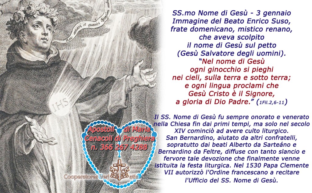 pochi sanno – o pochi ricordano – che il 3 gennaio onoriamo ed adoriamo il Santissimo Nome di Gesù…..