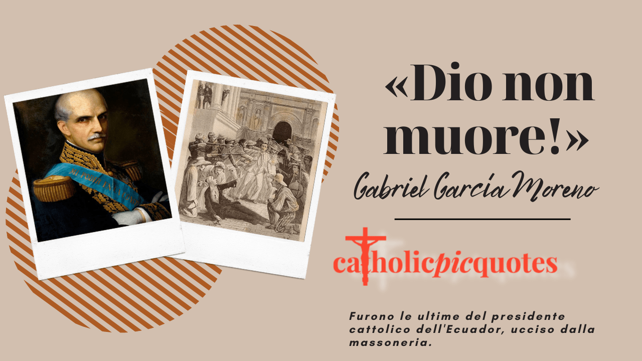 Il 6 agosto del 1875, festa della Trasfigurazione del Signore, Gabriel Marcia Moreno, mentre usciva dalla cattedrale di Quito dopo la Santa Messa, fu colpito a morte da un sicario massonico, il quale gridò: “Muori, carnefice della libertà!”. Dom Gabriel ebbe però la forza di dire, prima di spirare, questa frase: «Dios no muere! (Dio non nuore!)».