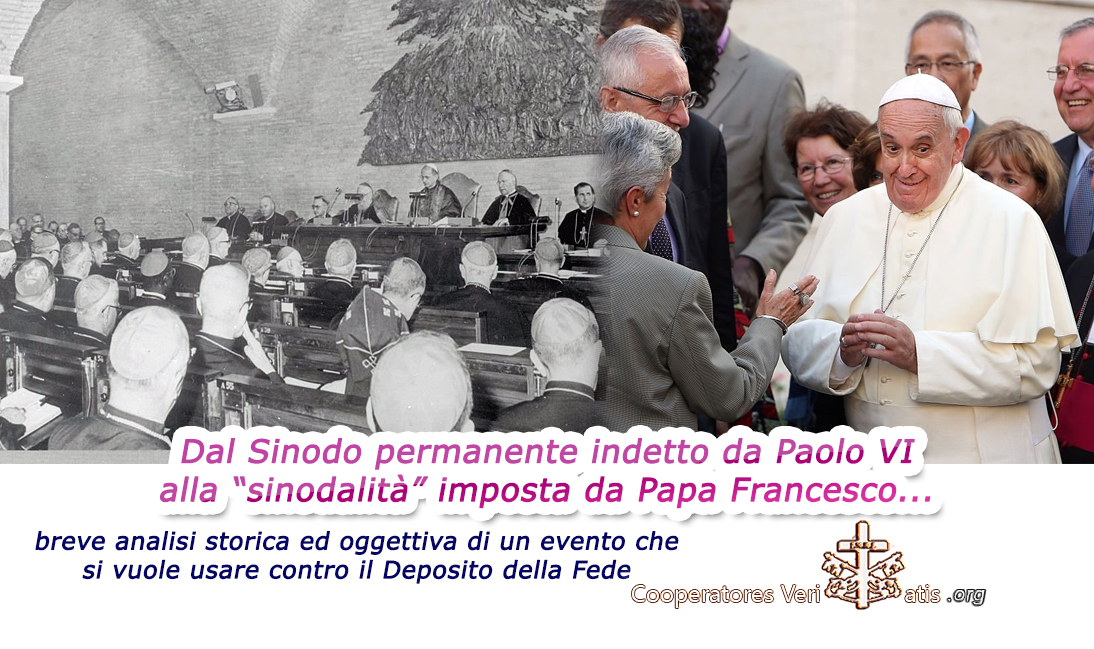 Premesso che il “Sinodo” è un evento ed uno strumento legittimo nella Chiesa che, in questi duemila anni, ha sempre avuto lo scopo di riunire i Vescovi, ascoltare i vari problemi ecclesiali e risolverli dottrinalmente; altra cosa è il concetto che da anni si vuole esprimere ed imporre, come un mantra, con il termine di “sinodalità”…