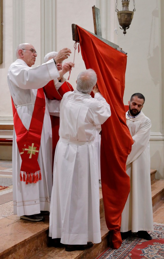 in Croce è innalzato l’Agnello che viene immolato per noi).
