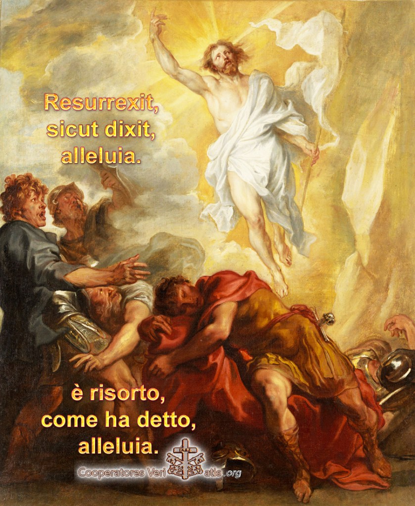 Il Natale ci aveva dato un Uomo-Dio; tre giorni fa abbiamo raccolto il suo sangue di un valore infinito per il nostro riscatto; ma all’alba della Pasqua non abbiamo più sotto i nostri occhi una vittima immolata, vinta dalla morte: è il trionfatore che l’ha annientata perché figlia del peccato, e che proclama la vita, quella immortale che ci ha riconquistata. Non è più l’umiltà delle fasce, non sono più gli spasimi dell’agonia e della croce; è la gloria, prima per Lui, poi per noi. Nel giorno di Pasqua Dio restaura nell’Uomo-Dio risuscitato la sua opera iniziale; il passaggio della morte non ha lasciato maggior traccia di quella del peccato, di cui l’Agnello divino si era degnato prendere la somiglianza; e non è solo Lui che torna alla vita immortale, ma tutta intera l’umanità. “Poiché per mezzo di un uomo è venuta la morte, ci dice l’Apostolo, anche per mezzo di un uomo vi è la risurrezione dei morti. E come tutti muoiono in Adamo, così tutti in Cristo saranno vivificati” (1Cor 15,21-22).