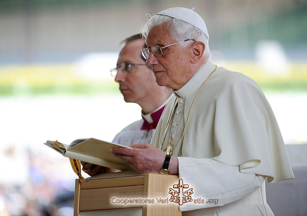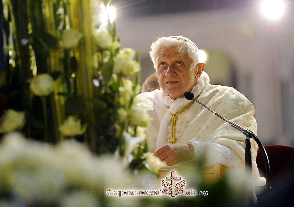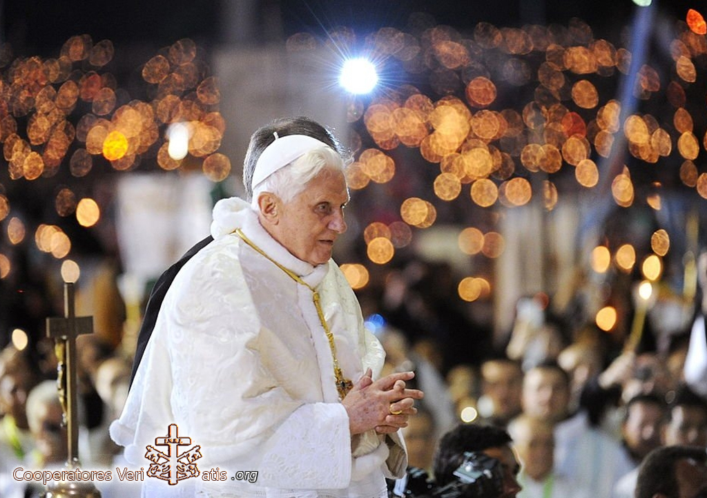 “Cari pellegrini, imitiamo Maria, facendo risuonare nella nostra vita il suo «avvenga per me»! Nel nostro tempo, in cui la fede in ampie regioni della terra, rischia di spegnersi come una fiamma che non viene più alimentata, la priorità al di sopra di tutte è rendere Dio presente in questo mondo ed aprire agli uomini l’accesso a Dio. Non a un dio qualsiasi, ma a quel Dio che ha parlato sul Sinai; quel Dio il cui volto riconosciamo nell’amore portato fino alla fine (cfr Gv 13, 1), in Gesù Cristo crocifisso e risorto. Cari fratelli e sorelle, adorate Cristo Signore nei vostri cuori (cfr 1 Pt 3, 15)! Non abbiate paura di parlare di Dio e di manifestare senza vergogna i segni della fede, facendo risplendere agli occhi dei vostri contemporanei la luce di Cristo, come canta la Chiesa nella notte della Veglia Pasquale che genera l’umanità come famiglia di Dio.