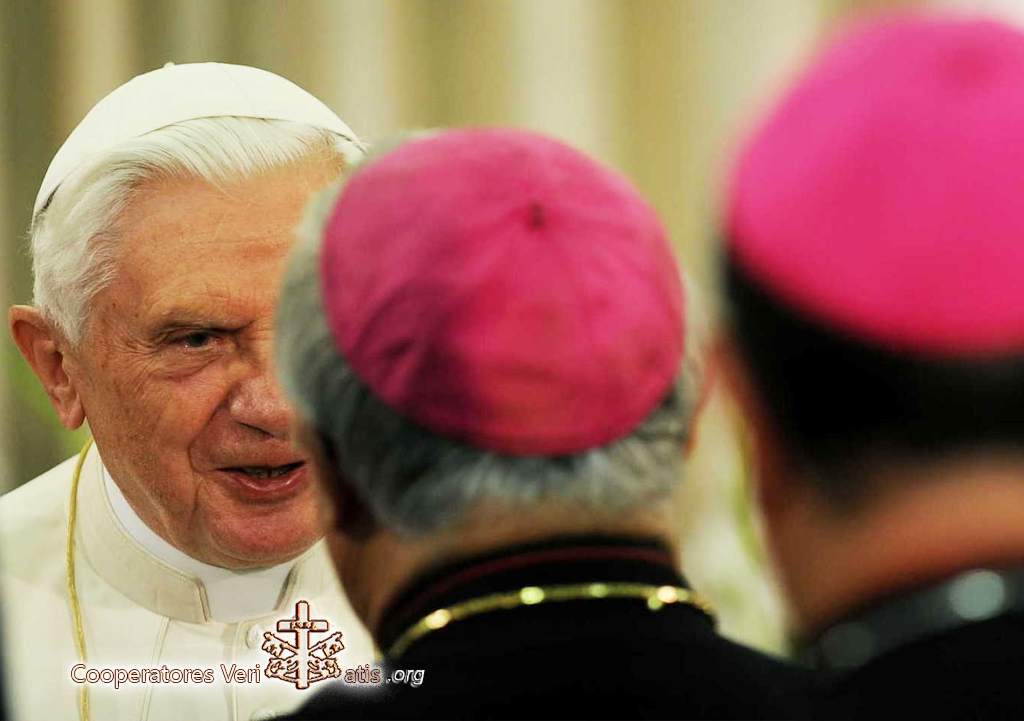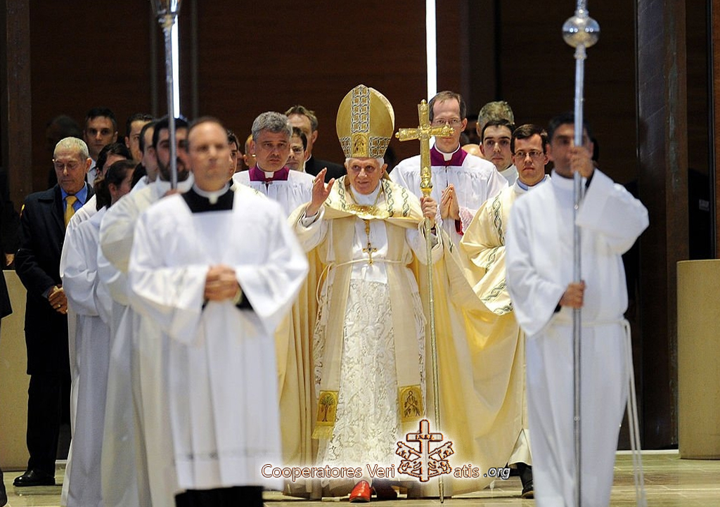 Anche questo si è sempre saputo, ma oggi lo vediamo in modo realmente terrificante: che la più grande persecuzione della Chiesa non viene dai nemici fuori, ma nasce dal peccato nella Chiesa e che la Chiesa quindi ha profondo bisogno di ri-imparare la penitenza, di accettare la purificazione, di imparare da una parte il perdono, ma anche la necessità della giustizia. Il perdono non sostituisce la giustizia. Con una parola, dobbiamo ri-imparare proprio questo essenziale: la conversione, la preghiera, la penitenza e le virtù teologali. Così rispondiamo, siamo realisti nell’attenderci che sempre il male attacca, attacca dall’interno e dall’esterno, ma che sempre anche le forze del bene sono presenti e che, alla fine, il Signore è più forte del male, e la Madonna per noi è la garanzia visibile, materna della bontà di Dio, che è sempre l’ultima parola nella storia.