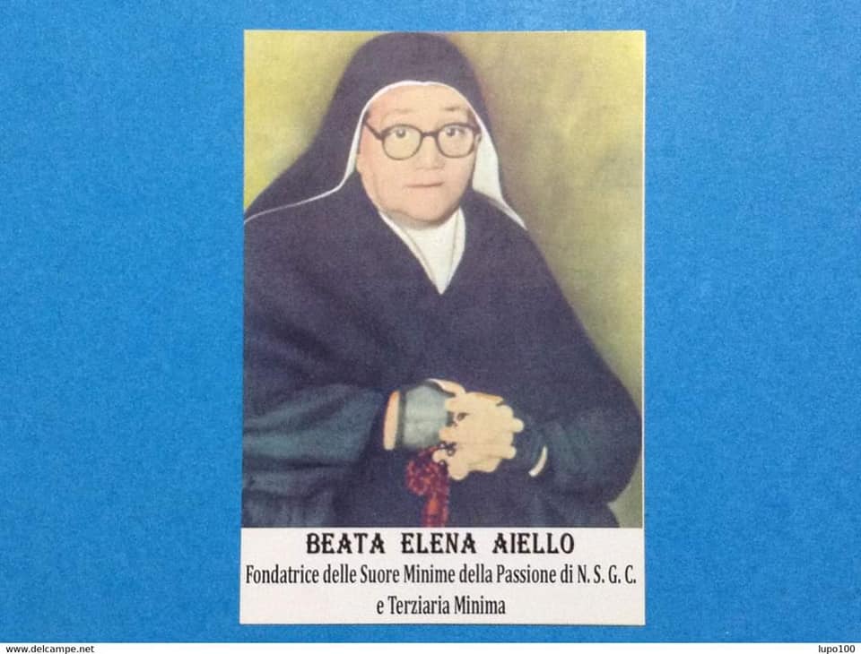 Suor Elena Aiello, nacque a Montalto Uffugo, in provincia di Cosenza, il 10 aprile 1895. La sua vita si intreccia con quella della congregazione religiosa da lei fondata nel 1928, allo scopo di raccogliere ed educare cristianamente le bambine abbandonate: le Suore Minime della Passione di N.S. Gesù Cristo, sulla scia spirituale di san Francesco di Paola, il santo taumaturgo calabrese nato a pochi chilometri dal paesino natale di suor Elena.