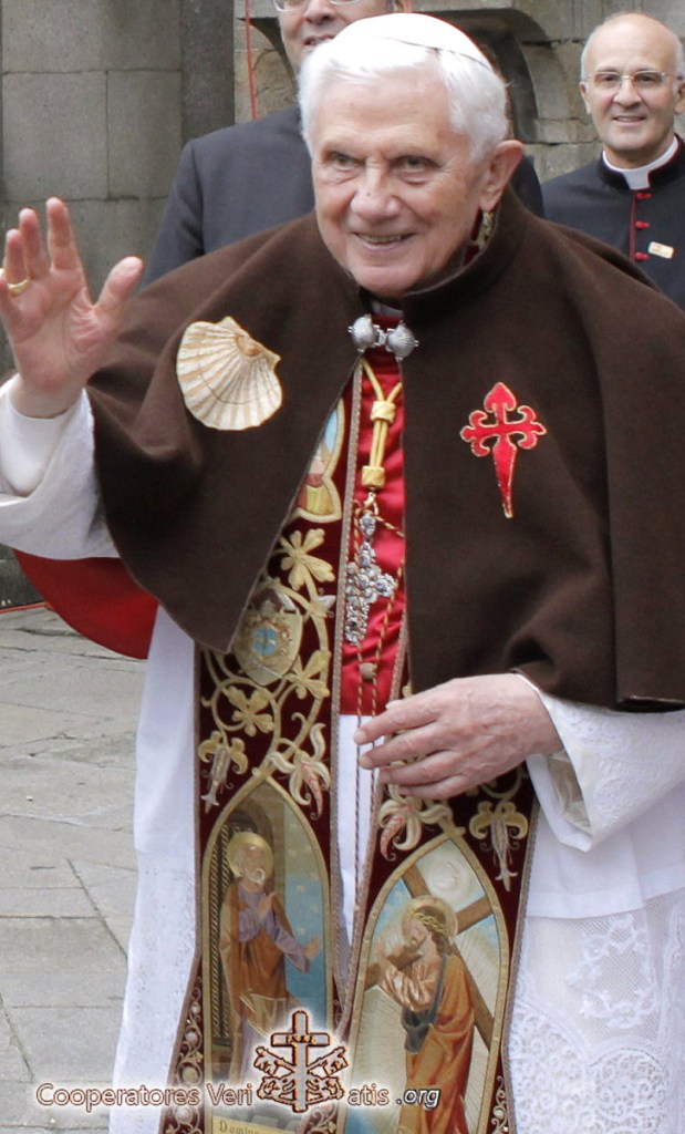 Ritorniamo ancora una volta alla conclusione del Vangelo di Luca. Gesù condusse i suoi vicino a Betània, ci viene detto. «Alzate le mani, li benedisse. Mentre li benediceva, si staccò da loro e veniva portato su, in cielo» (24,50s). Gesù parte benedicendo. Benedicendo se ne va e nella benedizione Egli rimane. Le sue mani restano stese su questo mondo, per mezzo della Chiesa. Le mani benedicenti di Cristo sono come un tetto che ci protegge. Ma sono al contempo un gesto di apertura che squarcia il mondo affinché il cielo penetri in esso e possa diventarvi una presenza.