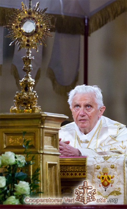 Questa nuova accessibilità presuppone anche una novità da parte nostra: mediante il battesimo, la nostra vita è ormai nascosta con Cristo in Dio; nella nostra vera esistenza siamo già «lassù», presso di Lui, alla destra del Padre (cfr Col 3,lss). Se ci inoltriamo nell’essenza della nostra esistenza cristiana, allora tocchiamo il Risorto: lì siamo pienamente noi stessi. Il toccare Cristo e il salire sono intrinsecamente collegati. E ricordiamoci che, secondo Giovanni, il luogo dell’«elevazione» di Cristo è la sua croce e che la nostra «ascensione» che è sempre nuovamente necessaria, il nostro salire per toccarlo, deve essere un camminare insieme con il Crocifisso.