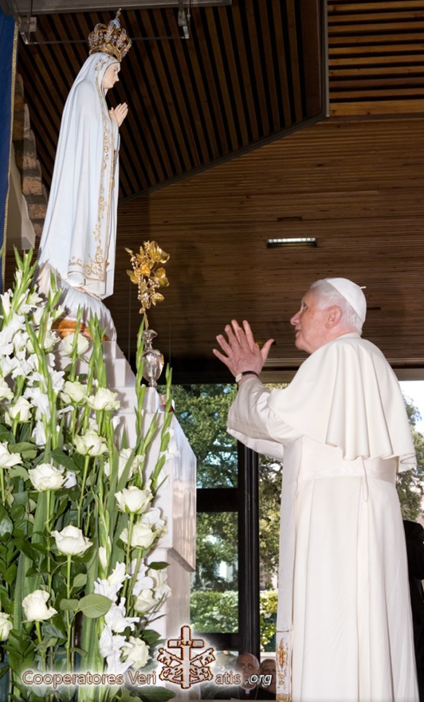 In questo contesto si pone poi l’annotazione circa la nube che lo accoglie e lo sottrae ai loro occhi. La nube ci ricorda il momento della trasfigurazione in cui una nube luminosa si posa su Gesù e sui discepoli (cfr Mt 17,5; Me 9,7; Le 9,34s). Ci ricorda l’ora dell’incontro tra Maria e il messaggero di Dio, Gabriele, il quale le annuncia che la potenza dell’Altissimo l’avrebbe «coperta con la sua ombra» (cfr Le 1,35). Ci ricorda la sacra tenda di Dio nell’antica alleanza, in cui la nube è il segno della presenza di YHWH (cfr Es 40,34s) che, anche durante il pellegrinaggio nel deserto, precede Israele come nube (cfr Es 13,21s).