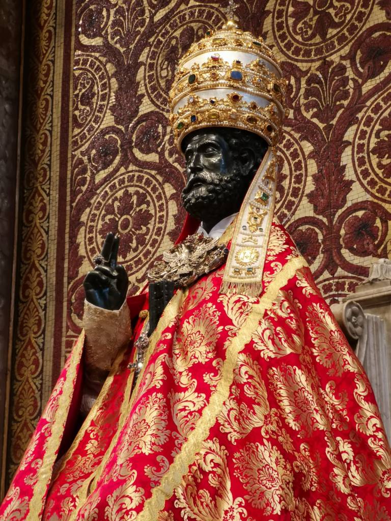 Ora dunque che l’eterna Sapienza eleva su di te, o Pietro, la sua casa, dove potremmo trovarla altrove? Da parte di Gesù risalito al cielo, non sei forse tu che possiedi ormai le parole di vita eterna? (Gv 6,69). La nostra religione, il nostro amore verso l’Emmanuele sono quindi incompleti, se non arrivano fino a te. E avendo tu stesso raggiunto il Figlio dell’uomo alla destra del Padre, il culto che ti rendiamo per le tue divine prerogative si estende al Pontefice tuo successore, nel quale continui a vivere mediante esse: culto reale che si rivolge a Cristo nel suo Vicario e che, pertanto, non potrebbe accontentarsi della troppo sottile distinzione fra la Sede di Pietro e colui che la occupa. Nel Romano Pontefice tu sei sempre, o Pietro, l’unico pastore e il sostegno del mondo. Se il Signore ha detto: “Nessuno va al Padre se non per me” (ivi 14,6), sappiamo pure che nessuno arriva al Signore se non per tuo mezzo. Come potrebbero i diritti del Figlio di Dio, pastore e vescovo delle anime nostre (1Pt 2,25), subire un detrimento in questi omaggi della terra riconoscente? Non possiamo celebrare le tue grandezze senza che, subito facendoci fissare i pensieri in Colui del quale sei come il segno sensibile, come un augusto sacramento, tu non ci dica, come dicesti ai padri nostri, mediante l’iscrizione posta sulla tua antica statua: Contemplate il Dio Verbo, la pietra divinamente tagliata nell’oro, sulla quale stabilito, io non sono crollato.
