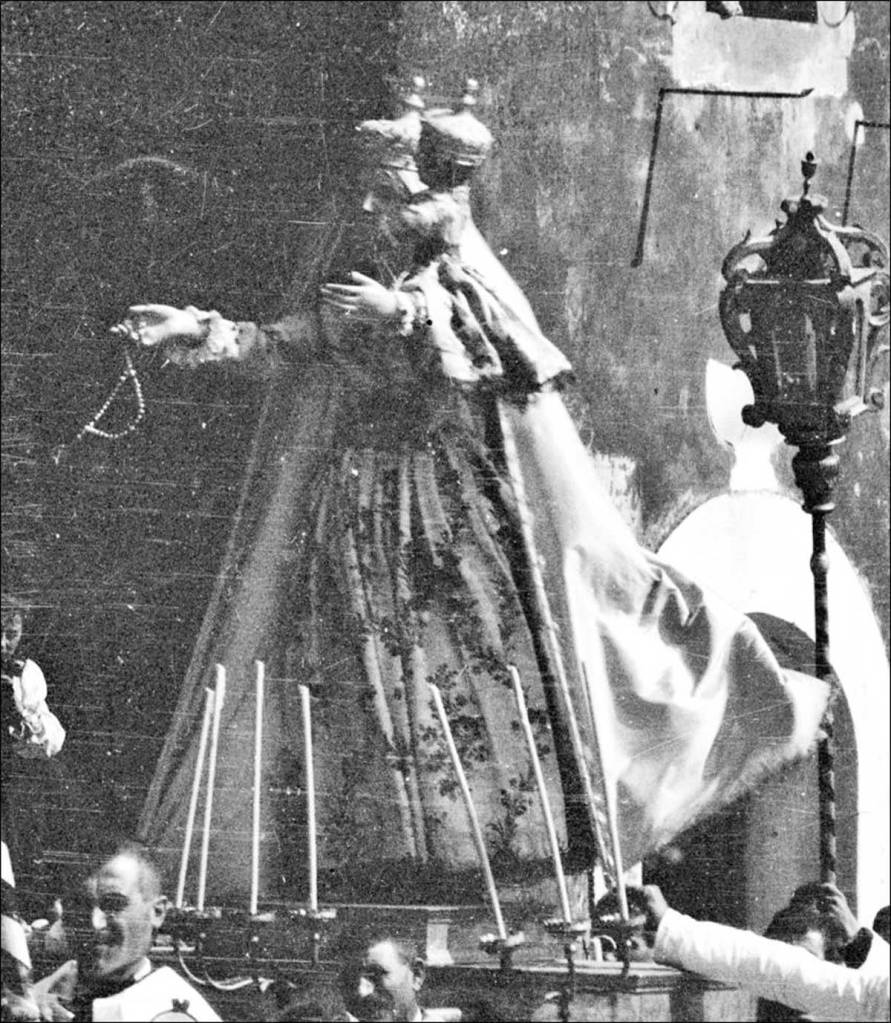 Quando poi iniziava la Festa, i primi a poterla vedere trionfalmente vestita, erano proprio i più poveri, gli ammalati, gli anziani, i bambini… che ne ricevevano la prima benedizione, da qui partiva la processione, portata in spalla dai devoti, dalle Confraternite che giustamente facevano a gara per avere l’onore di portarLa alla venerazione di tutto il popolo.