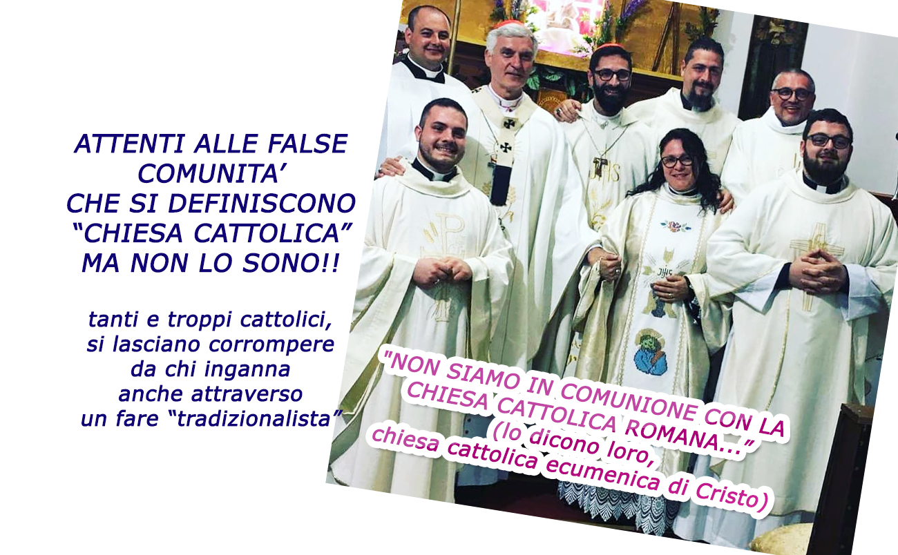Possiamo scherzarci su ma… non sottovalutiamo i danni che fanno perchè, non poche anime sono cadute e cadono in questa trappola, e su Facebook dal momento che si presentano come cattolici “tradizionalisti”, ingannano tantissime persone con frasi della Scrittura, persino di Santi e immaginette sacre… usano persino citare i Pontefici per ingannare… celebrano la Messa in rito antico… Ma non è tutto oro ciò che da loro luccica!! e non sono i “soli”, oggi però ci occupiamo di questa triste realtà.