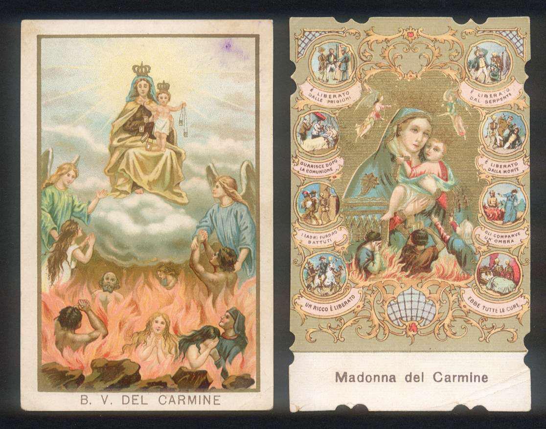 Questa protezione di Maria sarebbe stata un dono non solo per la vita presente, ma anche per quella futura. Così avvenne al Papa Giovanni XXII° una promessa della stessa Santissima Vergine a mezzo di una visione, che il Sabato successivo alla morte, sarebbe scesa in Purgatorio a liberare le anime rivestite di quel Santo Abito per portarle in paradiso (Privilegio Sabatino). La Chiesa, ha riconosciuto e apprezzato questo segno attraverso la vita di tanti Santi e di molti Sommi Pontefici che l’hanno raccomodato e portato. Il Pontefice san Pio X predispose la sostituzione dello scapolare con la medaglietta, ma senza modificare l’imposizione dello scapolare quale atto primario, inoltre estese a tutta la Chiesa e a tutti i fedeli l’opportunità di indossare lo Scapolare per quanti non avessero una iscrizione specifica al Carmelo. La festa solenne della Madonna del Carmine viene celebrata il 16 Luglio o in un giorno vicino e pastoralmente adatto.