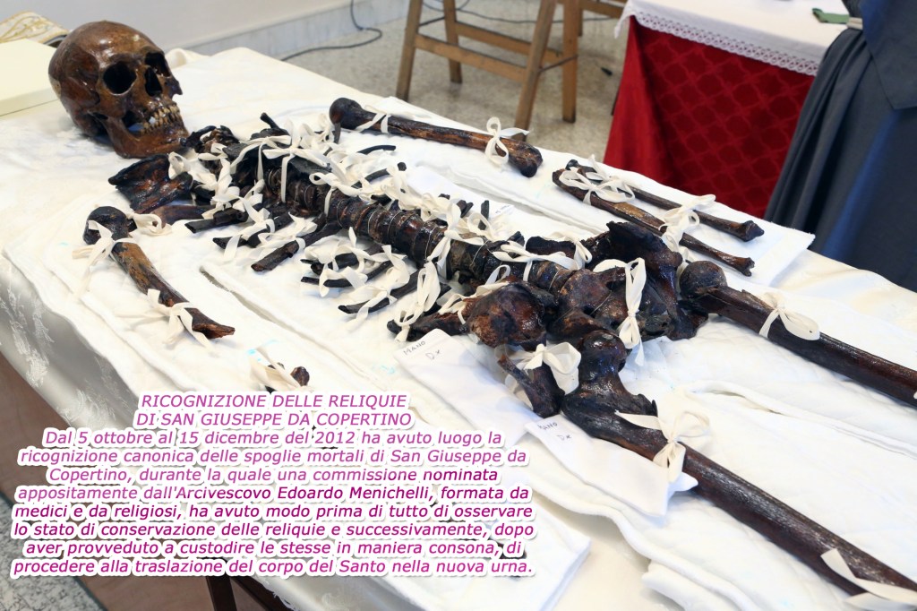 👉 In effetti volava nell’aria come un uccello, fenomeni che ancora oggi gli studiosi cercano di capire; il fatto storico è che questi fenomeni sono avvenuti e in presenza di tanta gente stupefatta, che l’umile Giuseppe da Copertino non era un ciarlatano né un mago, ma semplicemente un uomo di Dio, il quale opera prodigi e si rivela ai più umili e semplici. Per questo è considerato Patrono di tutti quegli studenti che, non per loro ostinazione o svogliatezza, hanno difficoltà nello studio e nel superare gli esami. Di lui si interessò l’Inquisizione di Napoli, che lo convocò per capire di che si trattasse e nel monastero napoletano di S. Gregorio Armeno, davanti ai giudici, Giuseppe ebbe un’estasi; la Congregazione romana del Santo Uffizio alla presenza del papa Urbano VIII, lo assolse dall’accusa di abuso della credulità popolare e lo confinò in un luogo isolato, lontano da Copertino e sotto sorveglianza del tribunale onde evitare strumentalizzazioni e abusi da parte dei più superstiziosi. Aveva familiarità con gli animali, con cui conversava e come si era identificato in fratel Asino, così identificava gli altri uomini nelle sembianze dell’animale che meglio simboleggiava le sue caratteristiche di vita. Nel 1656 papa Alessandro VII mise fine al suo peregrinare da un convento all’altro, destinandolo ad Osimo dove rimase per sette anni fino alla morte, continuando ad avere estasi, a sollevarsi da terra e ad operare prodigi miracolosi. Morì il 18 settembre 1663 a 60 anni; fu beatificato il 24 febbraio 1753 da papa Benedetto XIV e proclamato santo il 16 luglio 1767 da papa Clemente XIII. Riposa nella chiesa a lui dedicata ad Osimo; festa liturgica il 18 settembre.