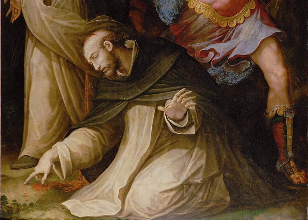 Questa immagine di S. Pietro Martire inquisitore e crociato contro i Patareni di Firenze richiama alla memoria l’immagine ancor più leggendaria di S. Domenico che con lo stendardo guida i crociati di Simone di Montfort contro gli albigesi.
