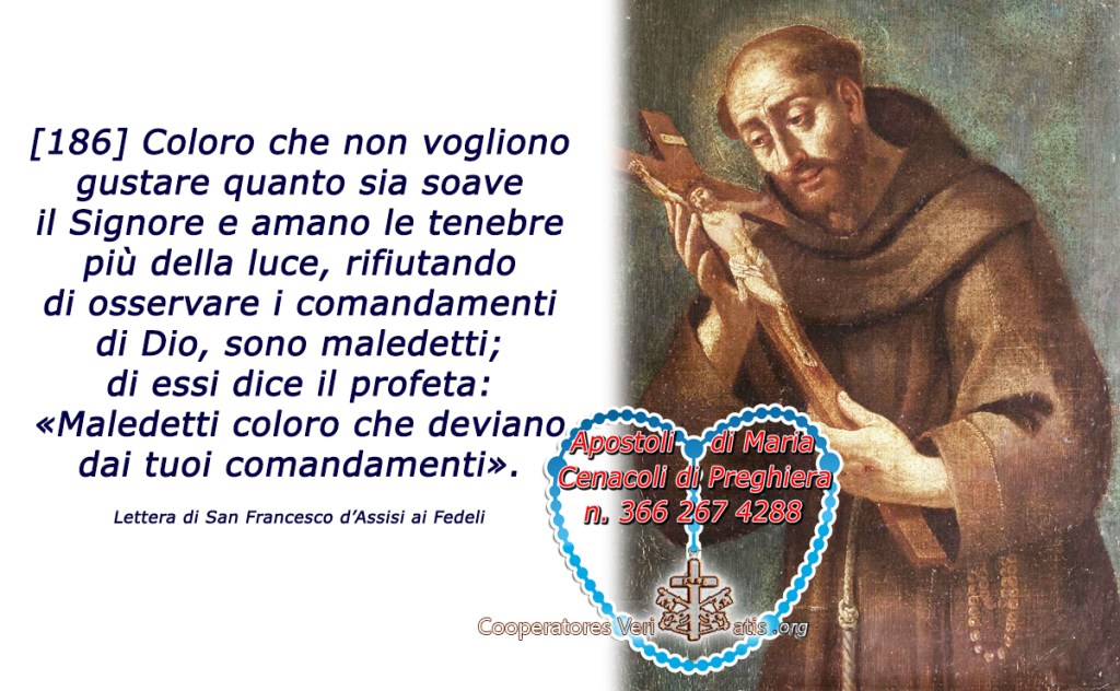 Ovvio che san Francesco NON sta maledicendo gli iniqui ma LI AMMONISCE, LI AVVERTE cosa è scritto di loro nella Scrittura… E NON GIUSTIFICA IL LORO PECCARE CON LA “BUONA FEDE“… Altro che bucolico, sognatore, romantico… dice ancora il Santo: