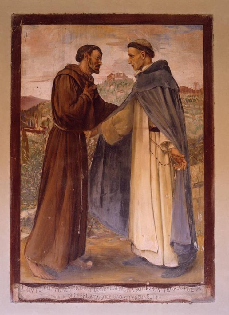 San Francesco fu tutt’altro che romantico, sognatore, bucolico: la sua virilità si era semplicemente spostata, da sotto la cintola, salendogli su, nel cuore e nella mente, quando si convertì e si consegnò al suo vescovo, ossia ALLA CHIESA, che pur era assai corrotta nel suo interno!! Altro che romantico! Ragionava e meditava, vedeva il cielo ma restava coraggiosamente con i piedi per terra, ma ciò non toglie che il francescanesimo ha sempre tentato di presentare un Francesco al di fuori della normalità e spesso anche fuori della stessa ecclesialità, una sorta di Riformatore interno alla Chiesa, per cambiare la Chiesa; un Francesco che spesso camminava “per conto suo” (qualcosa di vero, in fondo, potrebbe anche esserci)…. ma fu proprio grazie all’umiltà di Francesco ed alla sua ostinata obbedienza al Papa, che egli potè restare sui binari giusti, contrariamente al deragliamento, oggi, di non pochi suoi fraticelli!