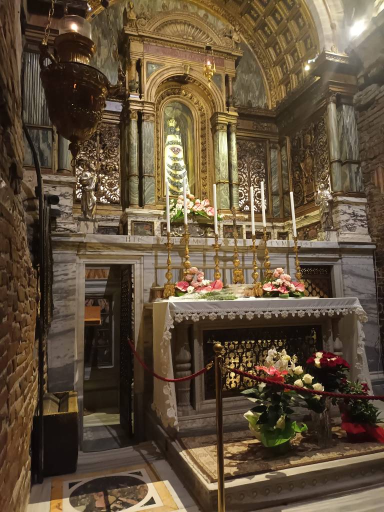 Ma, senza nulla togliere ai reperti storici, ciò non spiega come la Santa Casa sia giunta a noi. Il fatto è che neppure l’ipotesi della traslazione umana ha prove concrete e a noi piace credere, nella Comunione dei Santi, proprio ai tanti Santi che soggiornando nella Santa Casa, come attesta il murales nella Basilica, ci hanno lasciato delle prove concrete del fatto prodigioso.