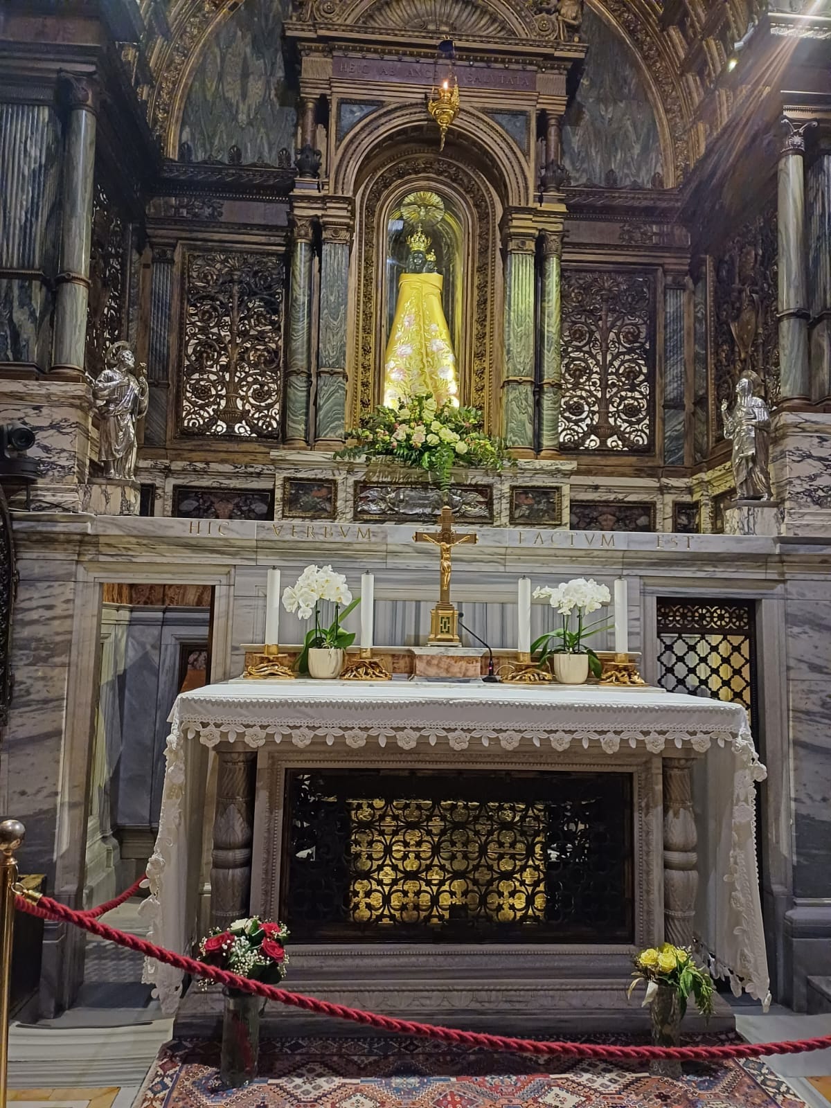 Ma, senza nulla togliere ai reperti storici, ciò non spiega come la Santa Casa sia giunta a noi. Il fatto è che neppure l’ipotesi della traslazione umana ha prove concrete e a noi piace credere, nella Comunione dei Santi, proprio ai tanti Santi che soggiornando nella Santa Casa, come attesta il murales nella Basilica, ci hanno lasciato delle prove concrete del fatto prodigioso.