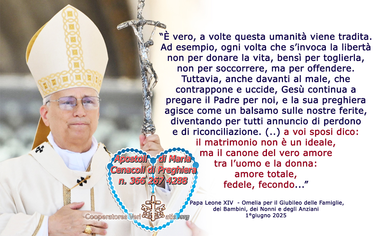 È vero, a volte questa umanità viene tradita. Ad esempio, ogni volta che s’invoca la libertà non per donare la vita, bensì per toglierla, non per soccorrere, ma per offendere. Tuttavia, anche davanti al male, che contrappone e uccide, Gesù continua a pregare il Padre per noi, e la sua preghiera agisce come un balsamo sulle nostre ferite, diventando per tutti annuncio di perdono e di riconciliazione. Tale preghiera del Signore dà senso pieno ai momenti luminosi del nostro volerci bene, come genitori, nonni, figli e figlie. Ed è questo che vogliamo annunciare al mondo: siamo qui per essere “uno” come il Signore ci vuole “uno”, nelle nostre famiglie e là dove viviamo, lavoriamo e studiamo: diversi, eppure uno, tanti, eppure uno, sempre, in ogni circostanza e in ogni età della vita.