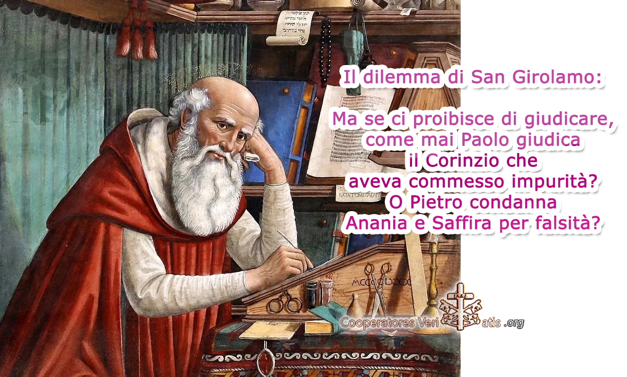 GIROLAMO . Ma se ci proibisce di giudicare, come mai Paolo giudica il Corinzio che aveva commesso impurità? O Pietro condanna Anania e Saffira per falsità?