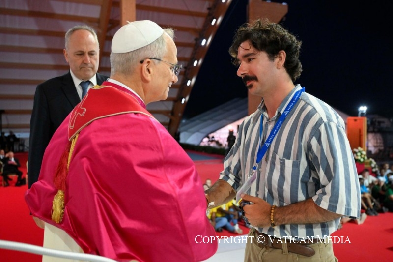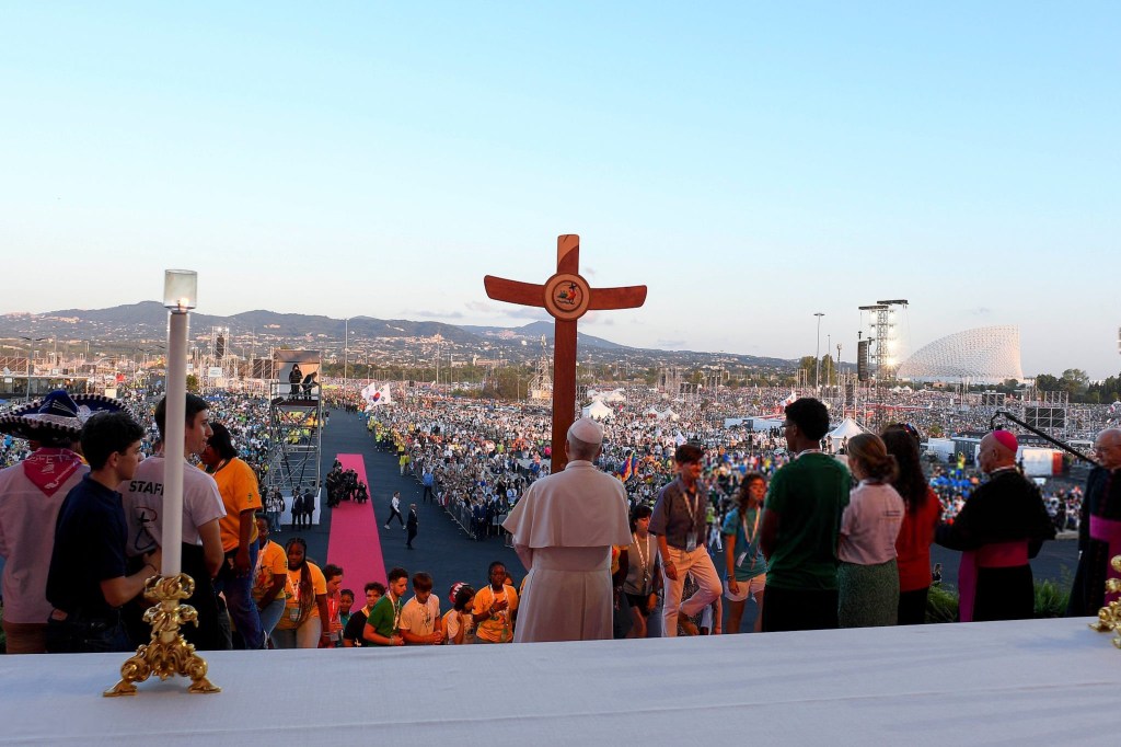 Cari giovani, avete detto bene: “scegliere significa anche rinunciare ad altro, e questo a volte ci blocca”. Per essere liberi, occorre partire dal fondamento stabile, dalla roccia che sostiene i nostri passi. Questa roccia è un amore che ci precede, ci sorprende e ci supera infinitamente: è l’amore di Dio. Perciò davanti a Lui la scelta diventa un giudizio che non toglie alcun bene, ma porta sempre al meglio.