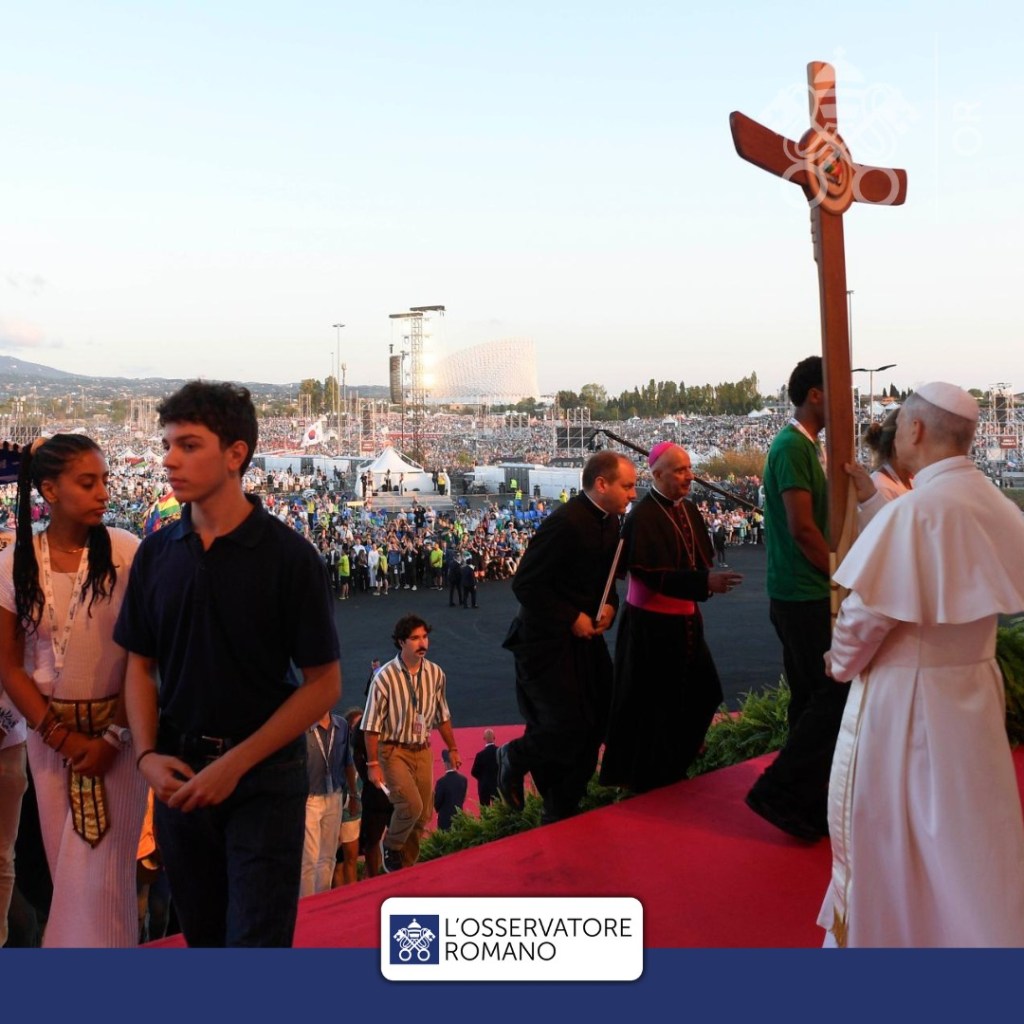 Queste scelte danno senso alla nostra vita, trasformandola a immagine dell’Amore perfetto, che l’ha creata e redenta da ogni male, anche dalla morte. Dico questo stasera pensando a due ragazze, María, ventenne, spagnola, e Pascale, diciottenne, egiziana. Entrambe hanno scelto di venire a Roma per il Giubileo dei Giovani, e la morte le ha colte in questi giorni. Preghiamo insieme per loro; preghiamo anche per i loro familiari, i loro amici e le loro comunità. Gesù Risorto le accolga nella pace e nella gioia del suo Regno. E ancora vorrei chiedere le vostre preghiere per un altro amico, un ragazzo spagnolo, Ignacio Gonzalvez, che è stato ricoverato all’ospedale “Bambino Gesù”: preghiamo per lui, per la sua salute.