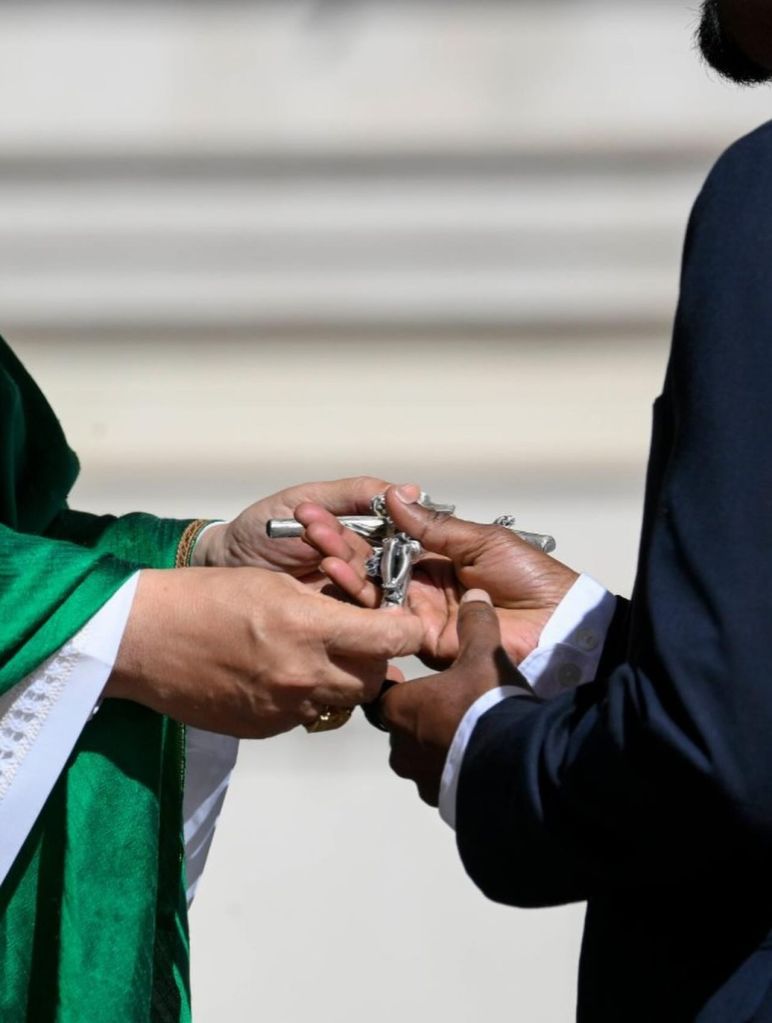di cuore rivolgo il mio saluto a tutti voi che avete preso parte a questa celebrazione giubilare dedicata ai catechisti, in particolare a coloro che sono stati istituiti oggi per questo ministero. E insieme con voi desidero inviare un caloroso augurio di buon servizio ai catechisti e alle catechiste di tutta la Chiesa sparsa nel mondo. Grazie a voi per il vostro servizio alla Chiesa! Preghiamo per loro, specialmente per quelli che operano in condizioni di grandi difficoltà. Dio vi benedica tutti!