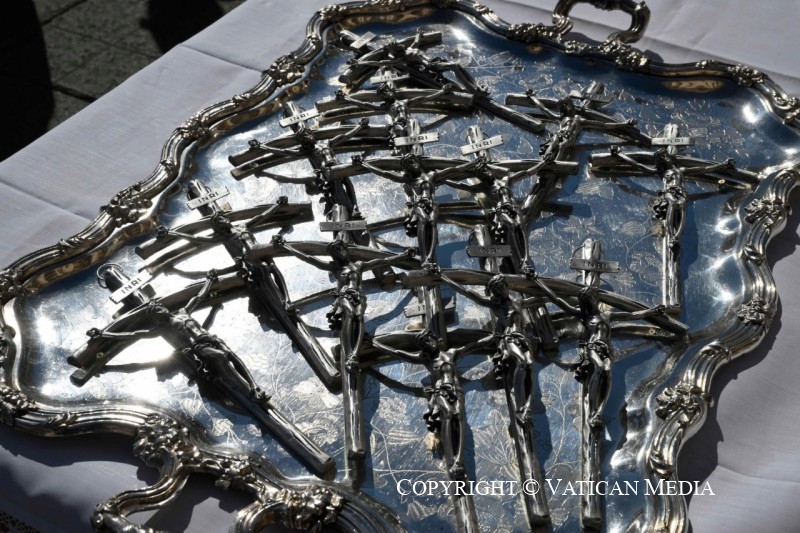Le parole di Gesù ci comunicano come Dio guarda il mondo, in ogni tempo e in ogni luogo. Nel Vangelo che abbiamo ascoltato (Lc 16,19-31), i suoi occhi osservano un povero e un ricco, chi muore di fame e chi si ingozza davanti a lui; vedono le vesti eleganti dell’uno e le piaghe dell’altro leccate dai cani (cfr Lc 16,19-21). Ma non solo: il Signore guarda il cuore degli uomini e, attraverso i suoi occhi, noi riconosciamo un indigente e un indifferente. Lazzaro viene dimenticato da chi gli sta di fronte, appena oltre la porta di casa, eppure Dio gli è vicino e ricorda il suo nome. L’uomo che vive nell’abbondanza, invece, è senza nome, perché perde sé stesso, dimenticandosi del prossimo. È disperso nei pensieri del suo cuore, pieno di cose e vuoto d’amore. I suoi beni non lo rendono buono.