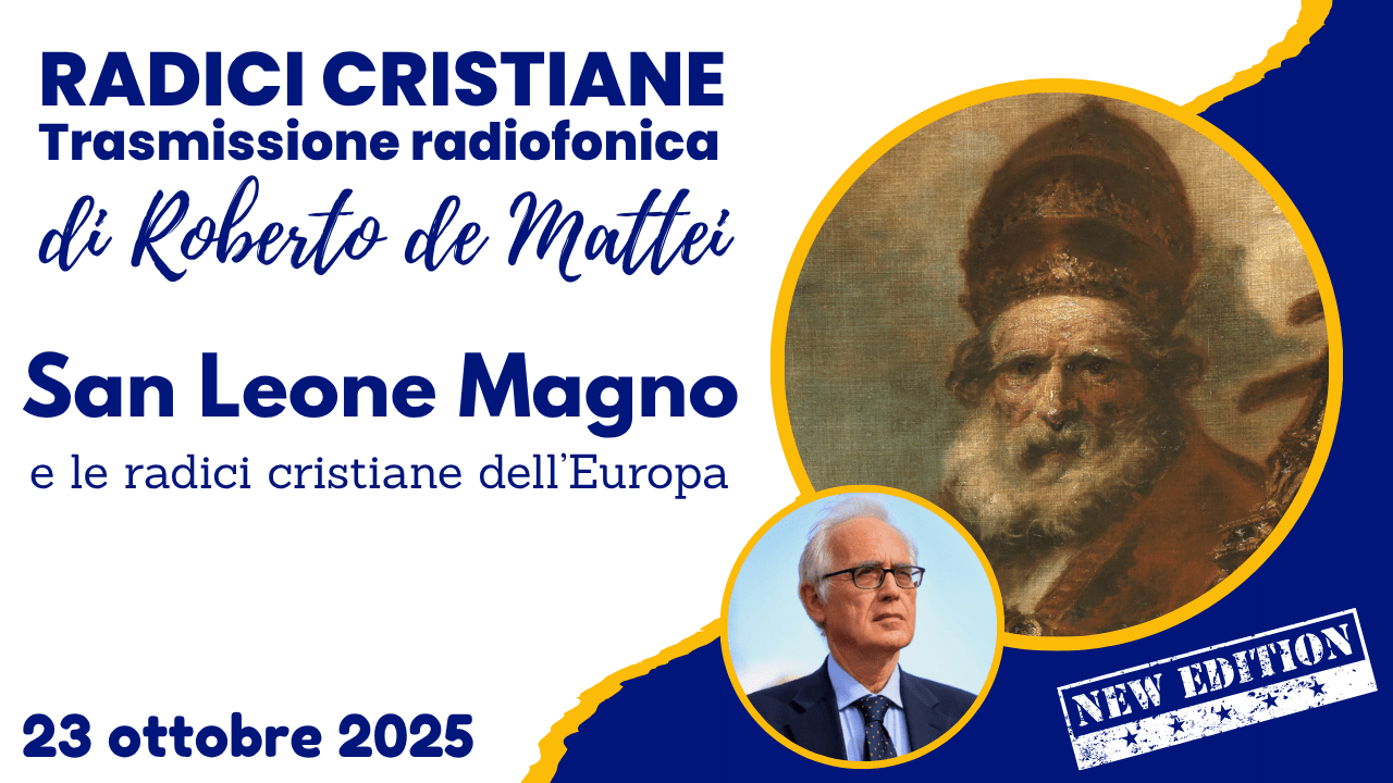 Desidero iniziare la trasmissione con un omaggio al nuovo Papa Leone XIV. Rievocherò dunque un suo santo ed eminente predecessore, il primo Leone di questo nome, e anche il primo a cui la posterità attribuì l’appellativo di Grande: San Leone I, conosciuto anche per la sua grandezza come San Leone Magno. Molte sono le ragioni per le quali a San Leone I viene riconosciuto il titolo di Grande, un Magno. La prima è anche la ragione per la quale gli fu conferito il titolo di dottore della Chiesa: il contributo che egli diede per definire l’autorità e la missione del Romano Pontefice. Ma poiché noi parliamo delle radici cristiane della nostra civiltà, vogliamo ricordarlo soprattutto per ciò che, sotto questo aspetto, lo rese grande.