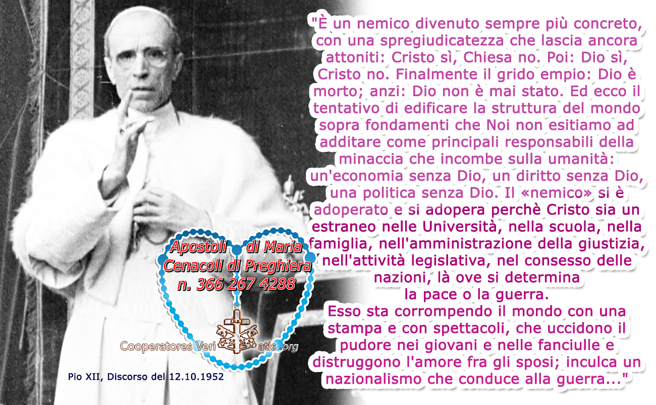 In un Discorso del 12.10.1952, così ammoniva il Venerabile Pio XII: