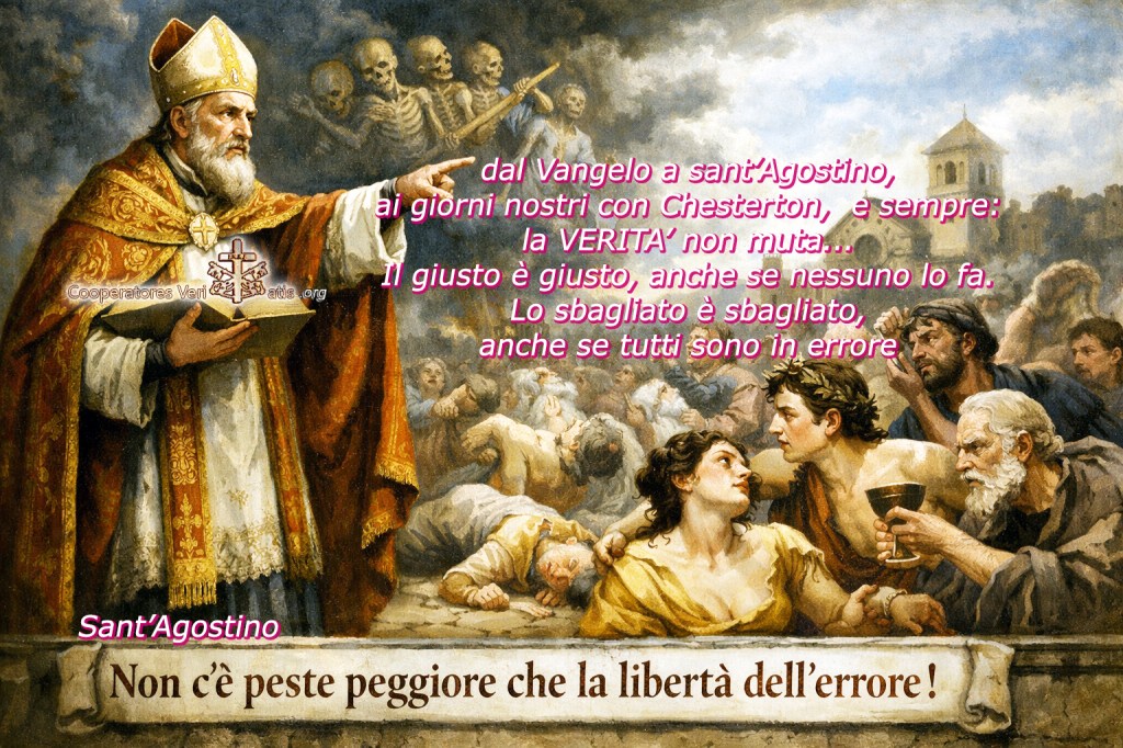 Diceva il grande Chesterton: Verità Oggettiva: La verità rimane tale indipendentemente dal consenso o dalla pratica. La frase esatta citata è: “Right is right, even if nobody does it. Wrong is wrong, even if everybody is wrong about it” (Il giusto è giusto, anche se nessuno lo fa. Lo sbagliato è sbagliato, anche se tutti sono in errore).