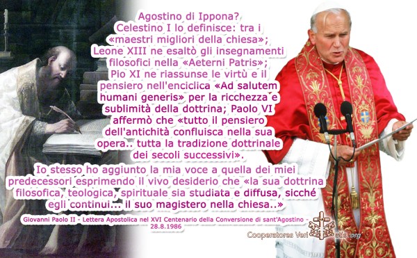 Agostino di Ippona, da quando appena un anno dopo la morte, fu annoverato dal mio lontano predecessore Celestino I tra i «maestri migliori della chiesa», ha continuato ad essere presente, nella vita della chiesa e nella mente e nella cultura di tutto l'Occidente. Altri pontefici romani poi, per non parlare dei Concili che hanno attinto... Continua a leggere →