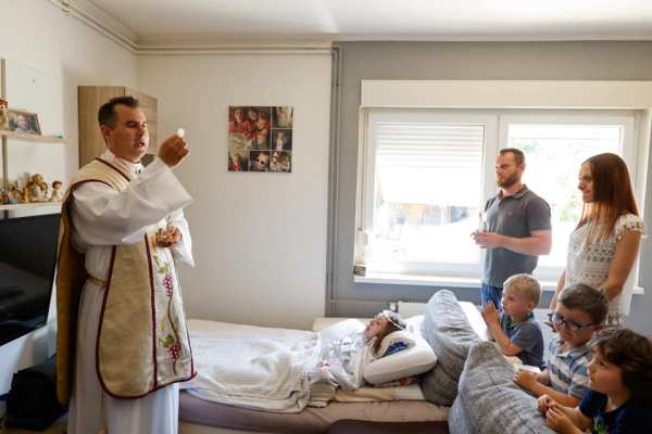 Solennità del Corpus Domini giugno 2021, a Krašić, in Croazia, villaggio natale del beato Alojzije Stepinac, il parroco rev. Ivan Vučak ha dato la Prima Comunione a Tamara, una adolescente di tredici anni, da anni gravemente malata.Dice il parroco che dopo avere ricevuto Gesù nel suo cuore, Tamara ha spalancato così tanto i suoi occhi,... Continua a leggere →