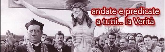Non è questo il punto non è restare attaccati a delle forme vuote ai dei contenitori vuoti – qui in gioco non ci sono “forme” qui in gioco c’è la fede perchè quando si arriva a negare validità al Credo quando un prete piuttosto che far fare la professione di fede dopo il vangelo, dopo l’omelia fa suonare Dolce è sentire non ha capito più niente si è perso e sta facendo perdere gli altri : tutti quelli che seduti lì a Torino si sono messi a ridere mentre avrebbero dovuto alzarsi e dire “scusi reverendo non le è consentito di fare questo “perchè la liturgia della chiesa non è del prete è della Chiesa la liturgia!” e se io impazzissi in questo momento e incominciassi a dire … non non leggiamo più il Vangelo di Marco li leggo una bella pagina del libro Cuore …. voi vi dovete alzare in piedi e dire “caro padre Salvo non ti è consentito fare questo” non possono omettere parti della messa non si possono cambiare parti della messa (tantomeno inventarsi delle preghiere eucaristiche , tralaltro ambigue e inefficaci, come ha fatto don Fredo sempre nella stessa Messa della Notte di Natale. N.d.R.).