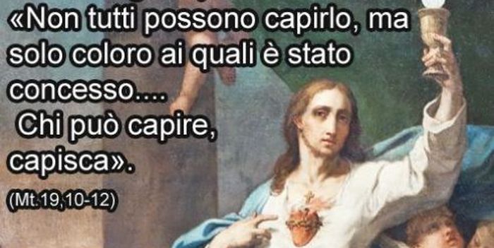 - Il Sacerdote è votato al celibato, non perché nella procreazione umana vi sia qualcosa di male, ma perché egli deve potersi dedicare interamente ad una forma più alta di generazione: la generazione di nuovi figli in Cristo, portando a Lui quelli che non Lo hanno mai conosciuto, riportando a Lui quelli che si sono perduti con il peccato, suscitando in quelli che già amano il Cristo l’attrattiva a servirLo con maggior completezza come Religiosi o Sacerdoti. L’energia che altrimenti egli metterebbe a servizio della carne non è inappagata, ma messa a servizio della casta generazione nello Spirito.