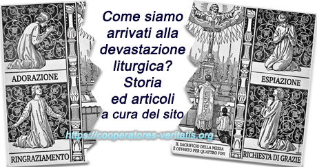 ATTENZIONE: Paolo VI, con la Costituzione Apostolica Missale Romanum del 3 aprile 1969 (50 anni or sono) fece entrare in vigore il 30 novembre successivo (Prima Domenica di Avvento), con l’inizio nel nuovo Anno liturgico, la nuova messa – Novus Ordo…. con tutte le conseguenze drammatiche che riepilogheremo in questa sezione, cliccando sotto sulla icona.