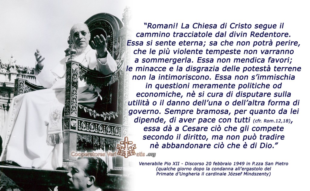 Venerabile Pio XII – Discorso in Piazza san Pietro del 20 febbraio 1949 (qualche giorno dopo la condanna all’ergastolo del Primate d’Ungheria il cardinale József Mindszenty), davanti ad una folla immensa...