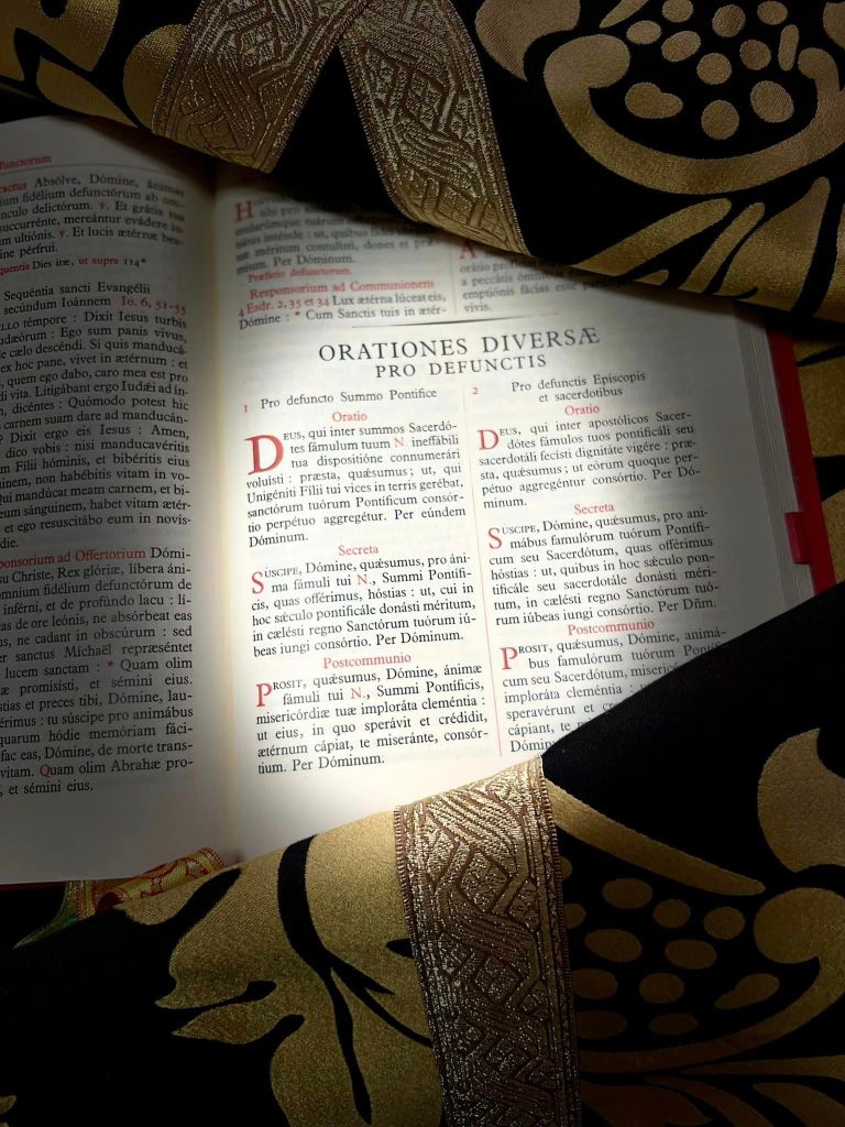 🙏“O Dio, che tra i sommi pontefici annoverasti per tua ineffabile disposizione il tuo servo N. fa che egli che in terra faceva le veci del tuo Unigenito Figliuolo, sia unito all’eterna società dei tuoi santi pontefici. Per lo stesso nostro Signore Gesù Cristo, tuo Figliuolo, Egli che, Dio con Te, vive e regna nell’unità”