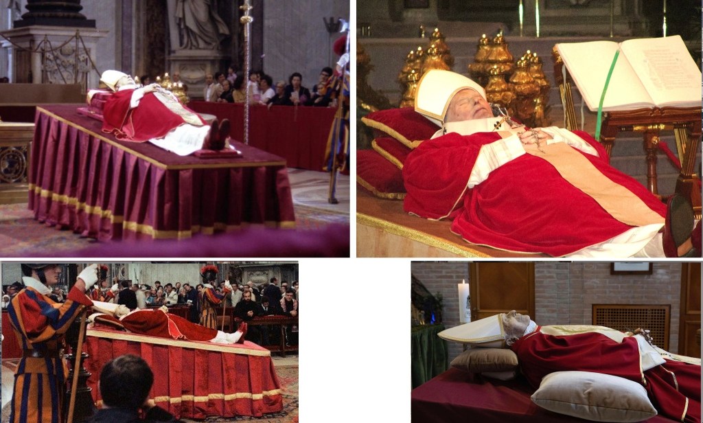 “Dio Onnipotente, Signore della vita e della morte, noi crediamo che la vita del Santo Padre Giovanni Paolo II è ora nascosta in te…Il suo volto contempli la tua bellezza”. Sono la frase iniziale e quella finale della formula che accompagna il nuovo rito della “stesura di un velo bianco sul volto del Pontefice defunto”.