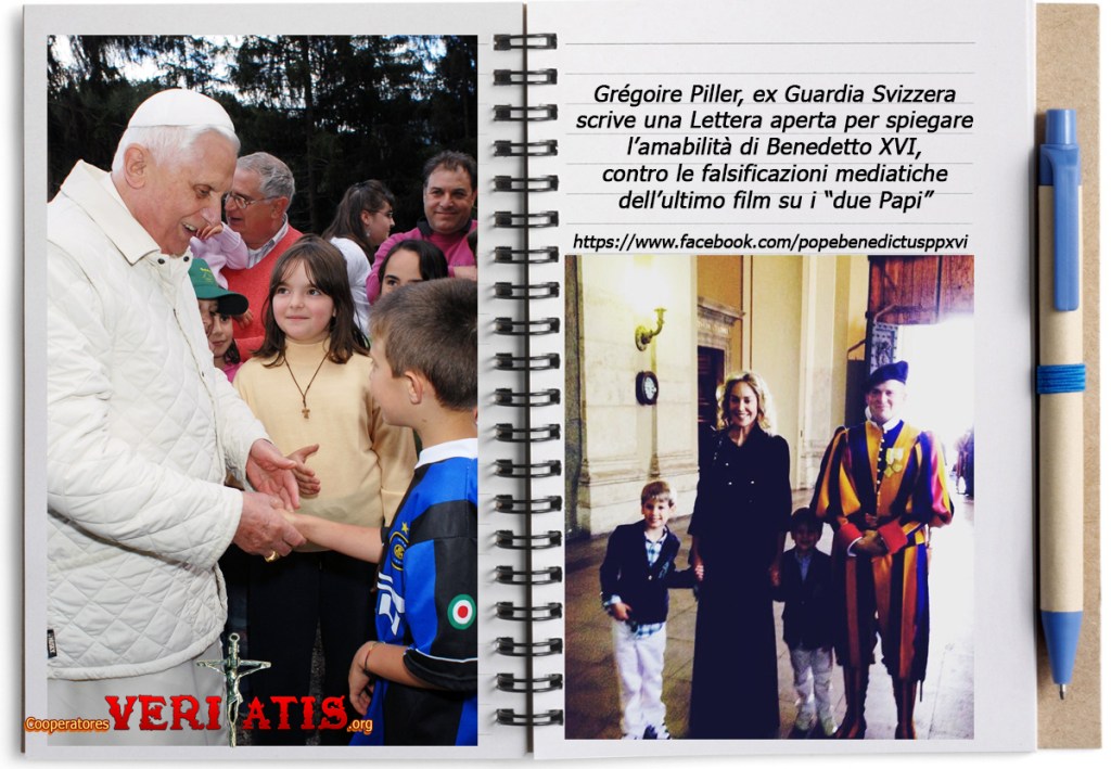 Qualche settimana fa ho visto I due papi su Netflix e devo dire che, in quanto ex guardia svizzera pontificia al servizio di Benedetto XVI durante tutto il suo pontificato, sono stato colpito dall’accurata ricostruzione del Vaticano. Però man mano che proseguivo nella visione la mia buona impressione diminuiva. Sono rimasto sorpreso e dispiaciuto nel vedere un Benedetto XVI presentato come avido, cattivo, meschino, animato da una incontrollabile sete di potere. Nel profondo del mio cuore ho pensato: ma questo non è il papa che ho conosciuto e ho servito!