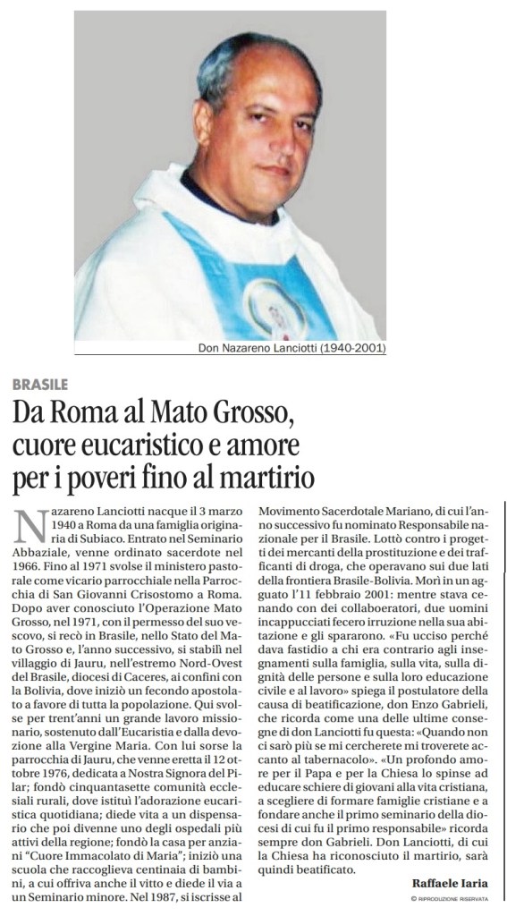 ECCO LA TESTIMONIANZA DI COME SI VIVE E SI MUORE PER I TRE AMORI BIANCHI…. sarà beatificato per martirio Don Nazareno Lanciotti, UCCISO in odio alla Fede