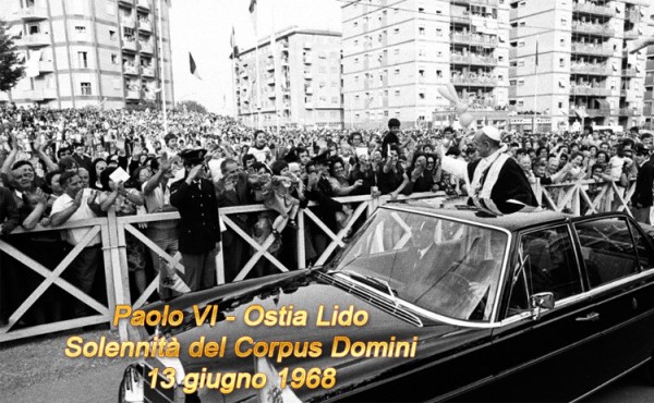 "Noi togliamo dal segreto silenzio dei nostri Tabernacoli, al quale solo gli iniziati, vogliamo dire i fedeli credenti e devoti, educati ai misteri della nostra religione, possono accedere coscientemente, la santissima Eucaristia" (Paolo VI) CELEBRAZIONE EUCARISTICA DEL «CORPUS DOMINI» AD OSTIA LIDO OMELIA DI PAOLO VI Solennità del «Corpus Domini» Lido di Ostia - Giovedì,... Continua a leggere →